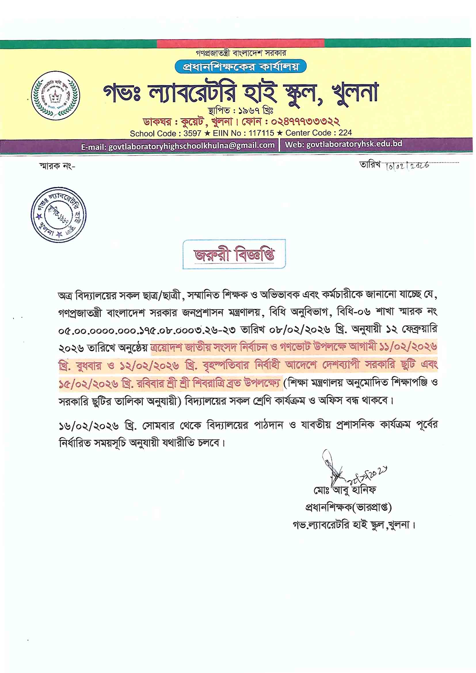ত্রয়োদশ জাতীয় সংসদ নির্বাচন এবং সাপ্তাহিক ও শিব ব্রত উপলক্ষ্যে ছুটি সংক্রান্ত